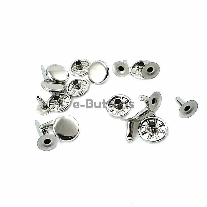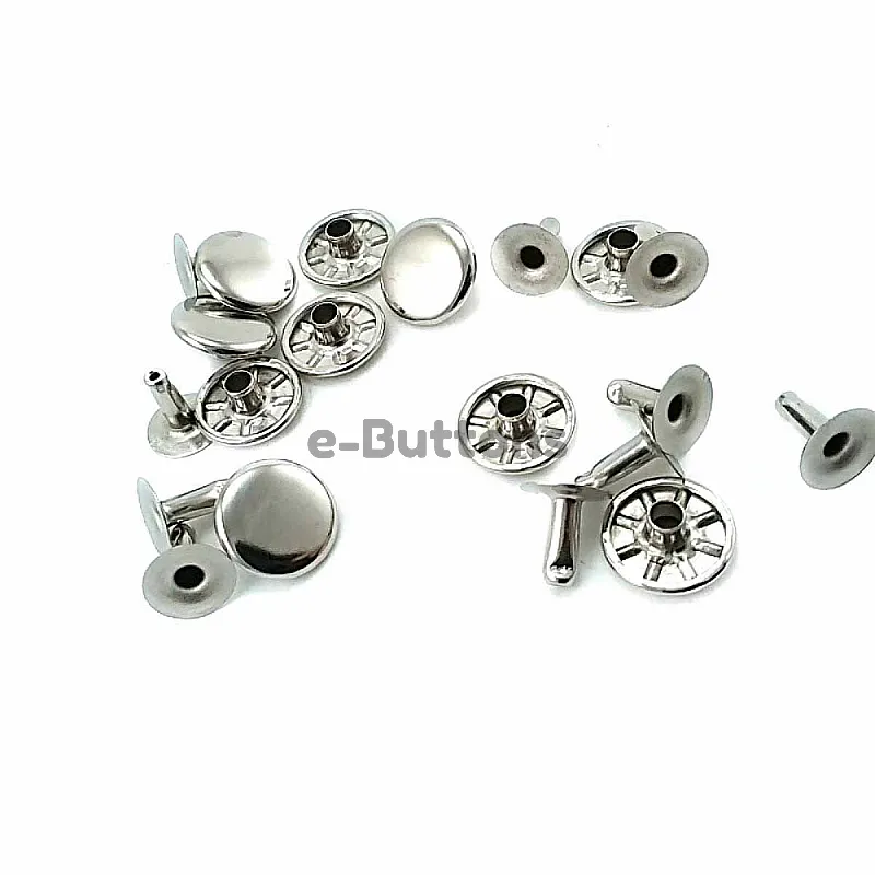 This product contains a set of plain metal rivets with a diameter of 12 mm. This set with 250 rivets can be easily attached to fabric, leather or other materials. Plain metal rivets give your clothes, bags or accessories a stylish and modern look. These rivets are made of iran and are durable for long-term use. You can buy this product at affordable price from e-buttons.com.