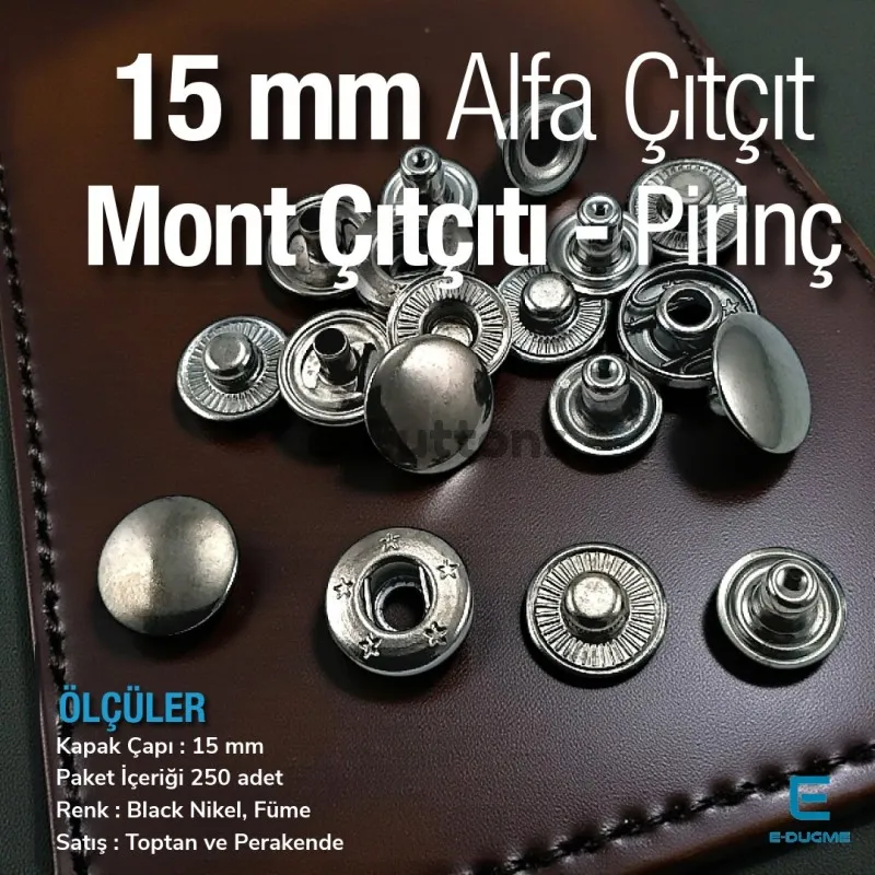 15 mm 3/4" Alpha Pirinç Snap Button - 5 Renk Seçeneği ile Professional Metal Fastener