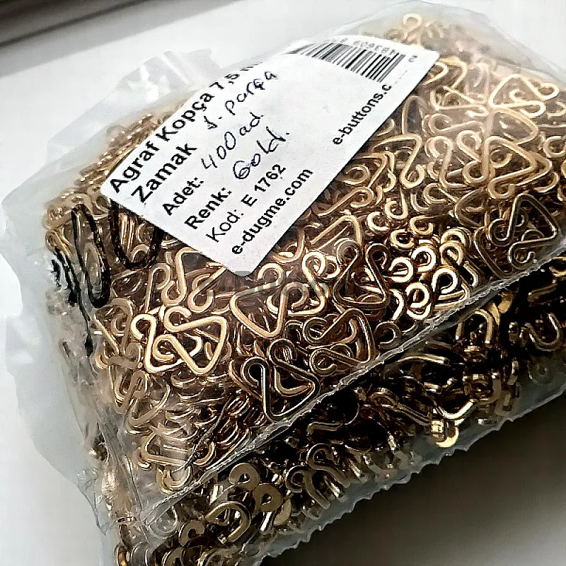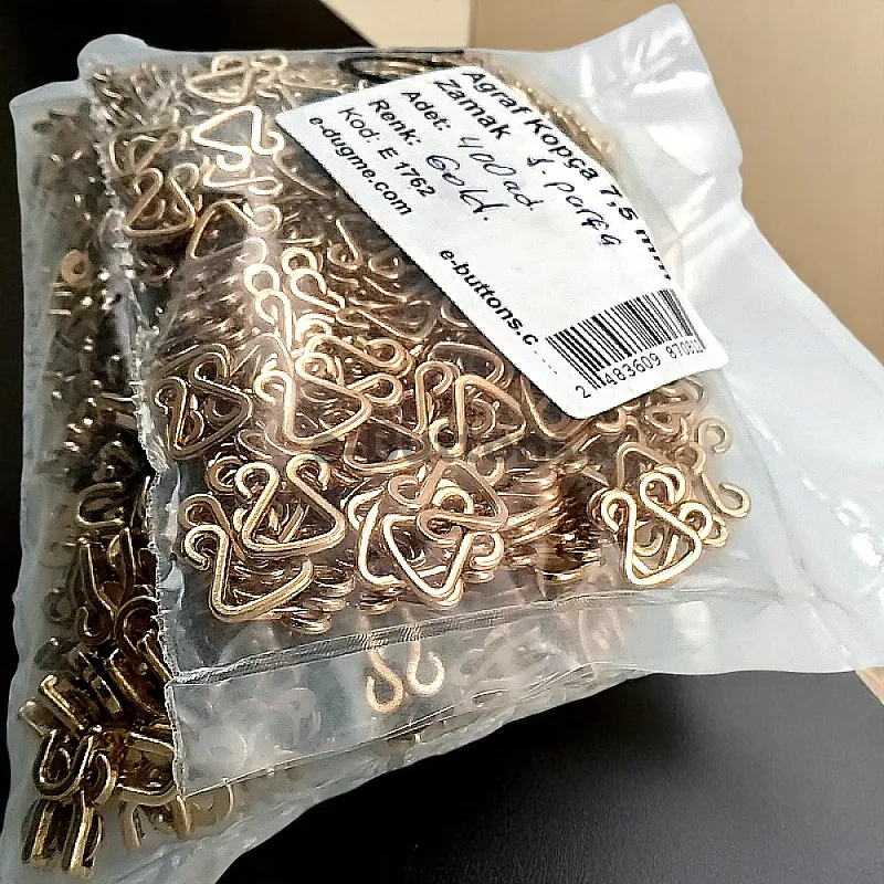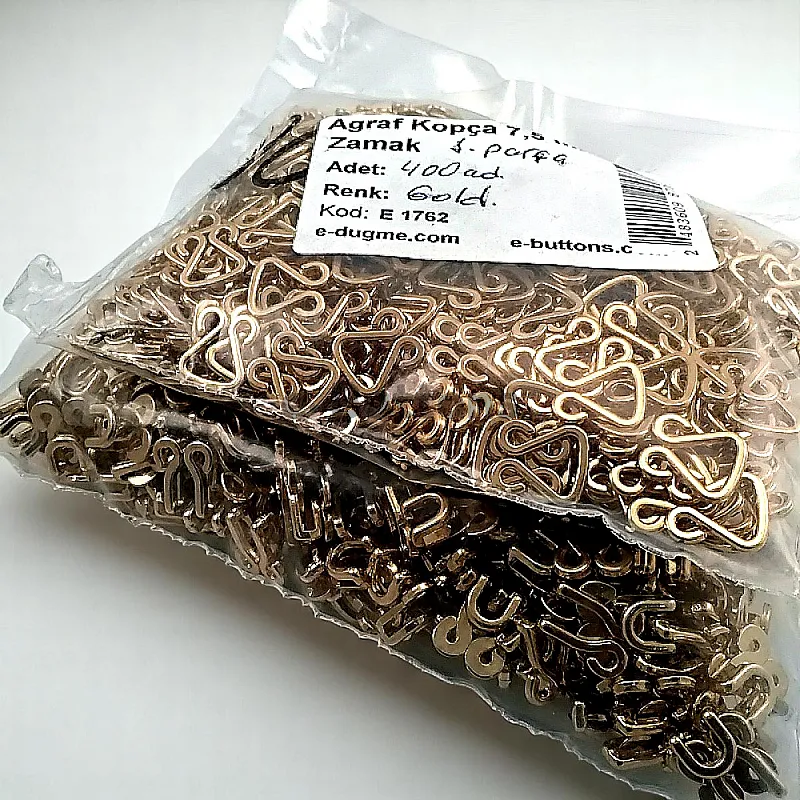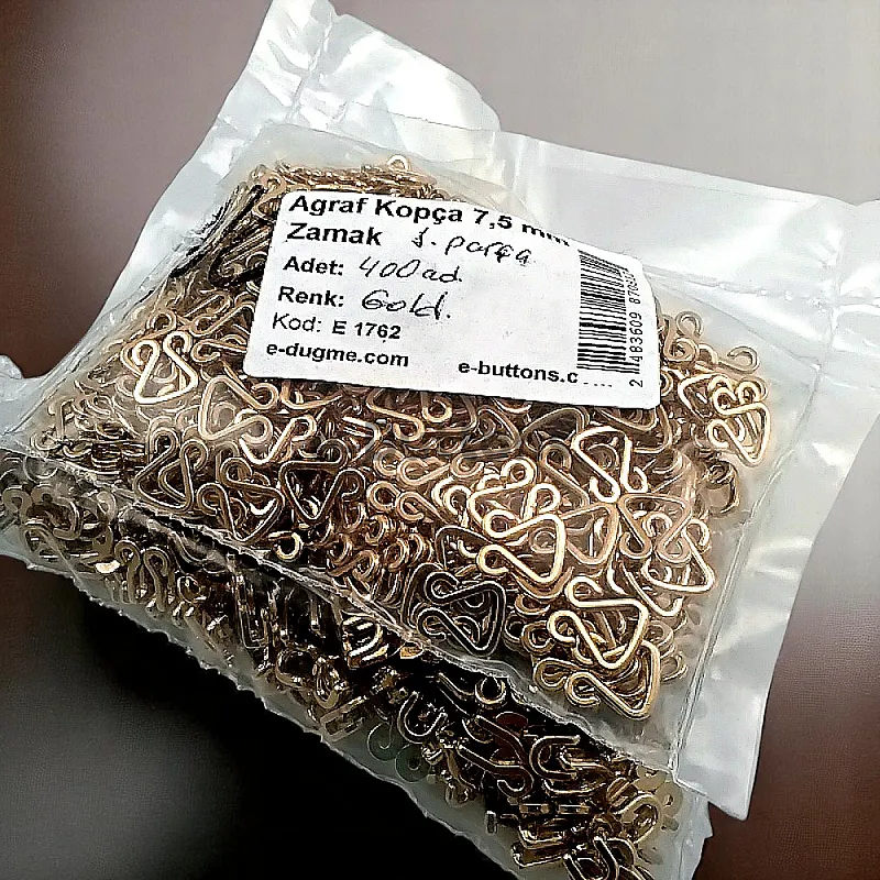 This 7.5 mm zamak metal hook & eye (agraf) is a small yet reliable fastening element, commonly used in promotional textile products, lingerie, and lightweight accessories. Its compact size makes it perfect for subtle applications requiring precision.