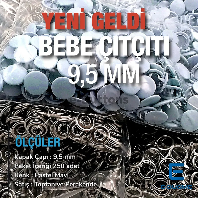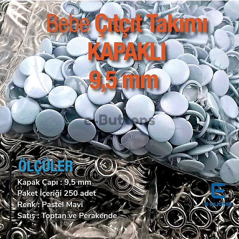 Suitable Usage Area Dyed 9,5 mm prong snap fastener on baby clothes, shirts and blouses, baby underpants