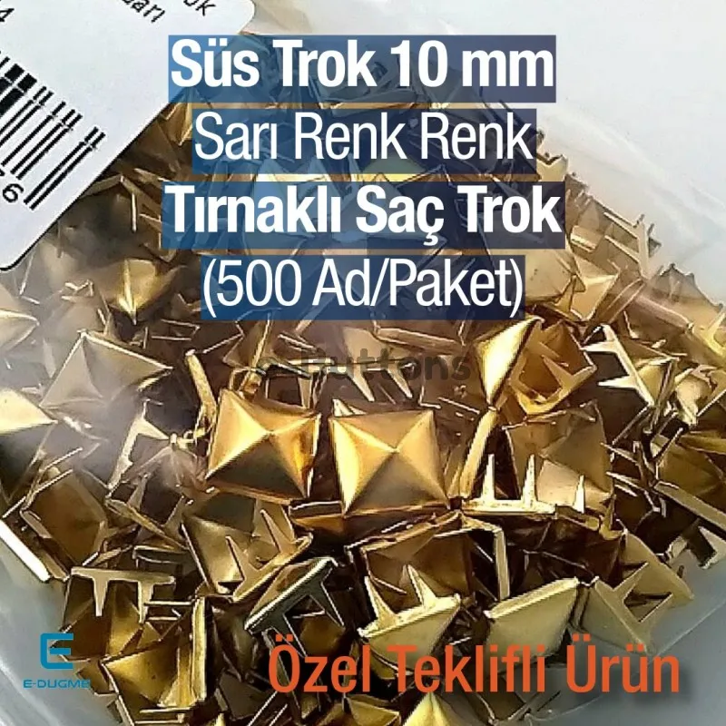Pyramid Patterned Yellow Metal Trok 10 mm Prong Stud Four Legged (500 pcs / Package) TR0014PKS