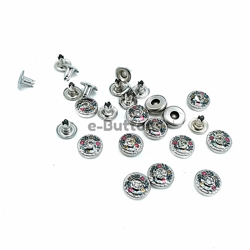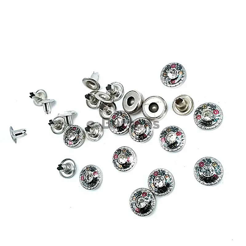 10 mm 16 boy Cam Taşlı Çiçekler Desenli Rivet R0030